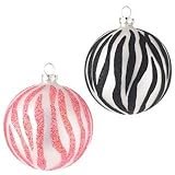 Set of Two Glitter Zebra Print Christmas Ball Ornaments
