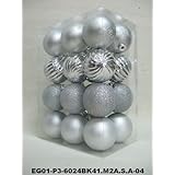 Christmas Ornaments Set of 24pc 2.5" Silver Mat Painted Shiny Decorated Glitter Balls