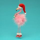 FLAMINGO W/DANGLE LEGS ORNAMENT - 7.5" FULL ROUND RESIN FLAMINGO W/DANGLE LEGS ORNAMENT - Christmas Ornament