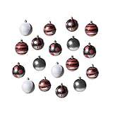 'Silvery Moon' Silver and Red - 18pc Set Shatterproof Christmas Ornaments - 3¼ inches/80mm