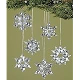 Each snowflake ornament features a unique shape and is clear with a silver backing
